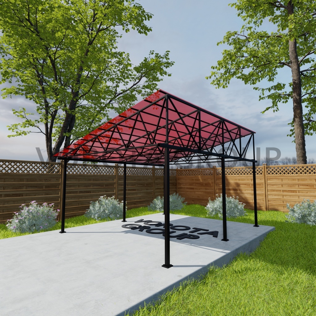 Двухскатный навес гранатового цвета, монолитный поликарбонат 6500*7000