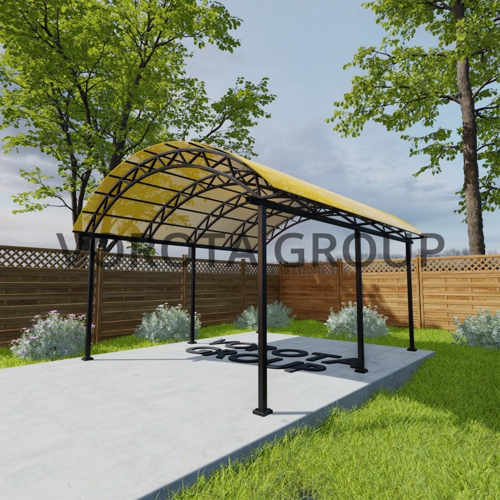Арочный навес желтого цвета, монолитный поликарбонат 6500*14000