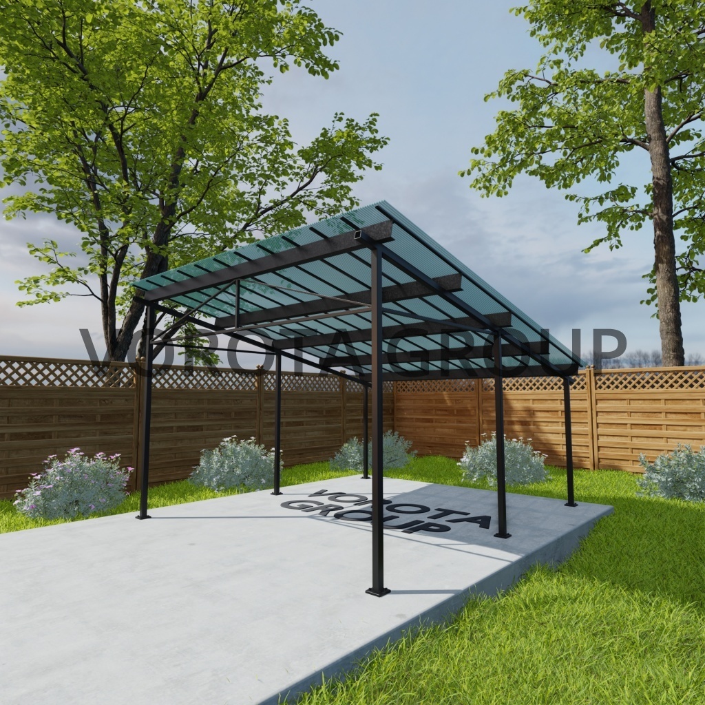 Навес из швелера зеленого цвета, сотовый поликарбонат 6500*14000