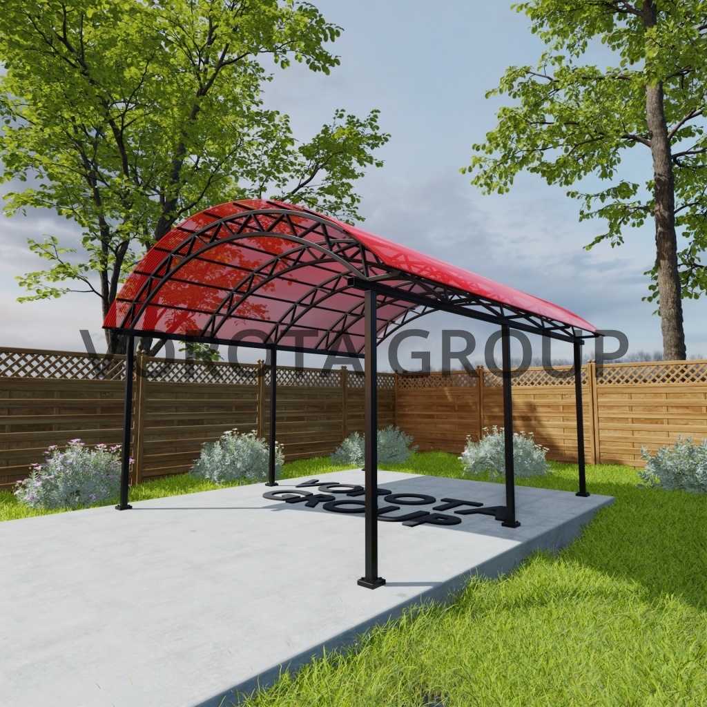 Арочный навес гранатового цвета, монолитный поликарбонат 6500*16000