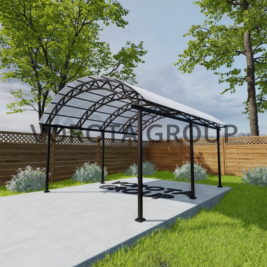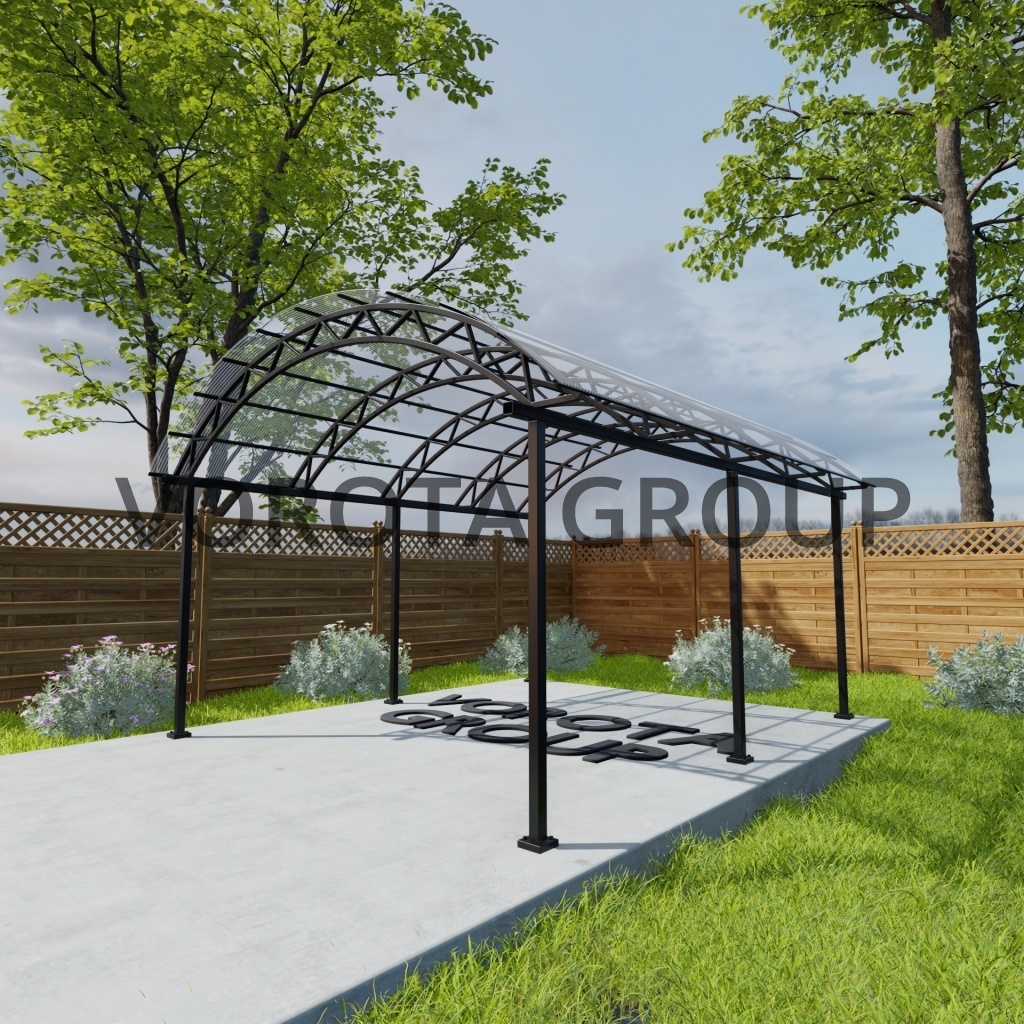 Двухскатный навес с арочным основанием бронзово-серого цвета, монолитный поликарбонат 5500*14000