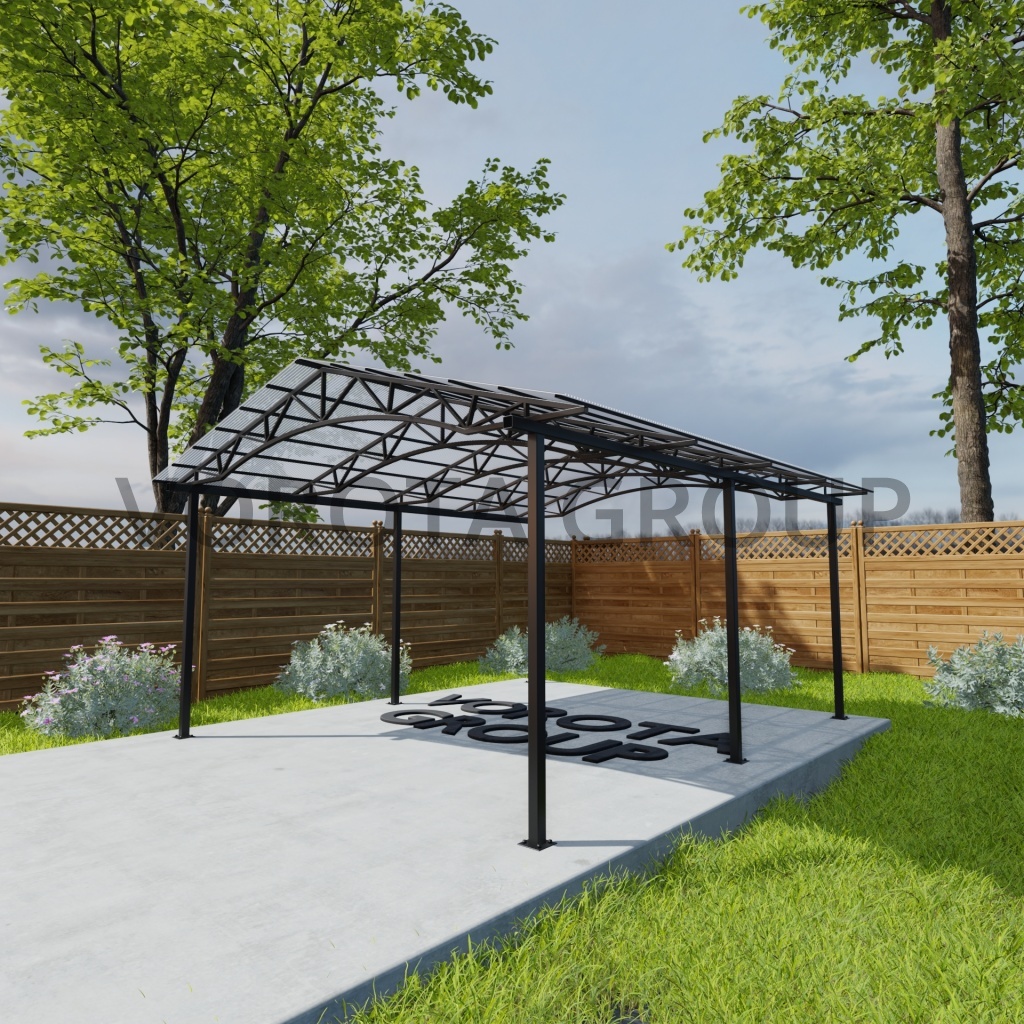Двухскатный навес бронзово-серого цвета, сотовый поликарбонат 5500*8000
