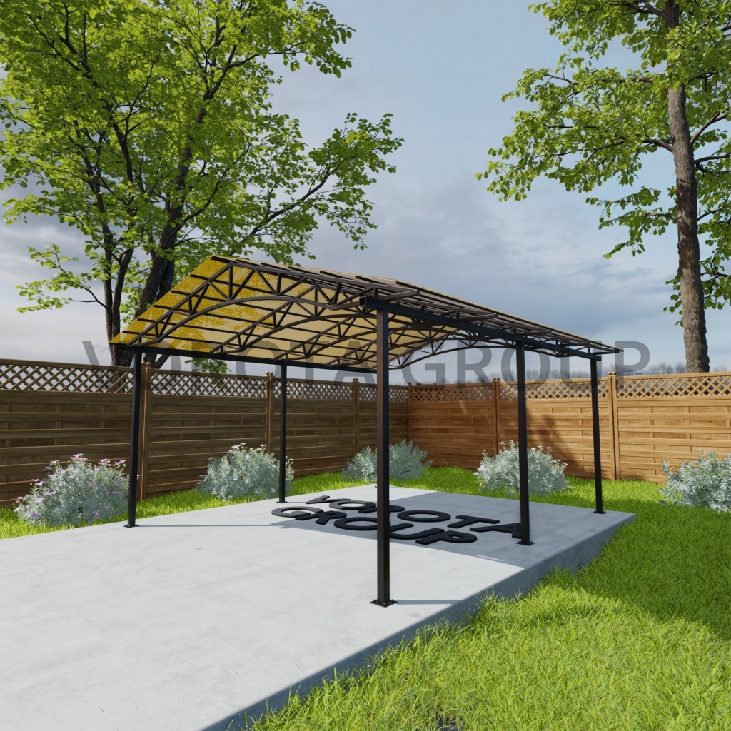 Двухскатный навес янтарного цвета, монолитный поликарбонат 5500*6000