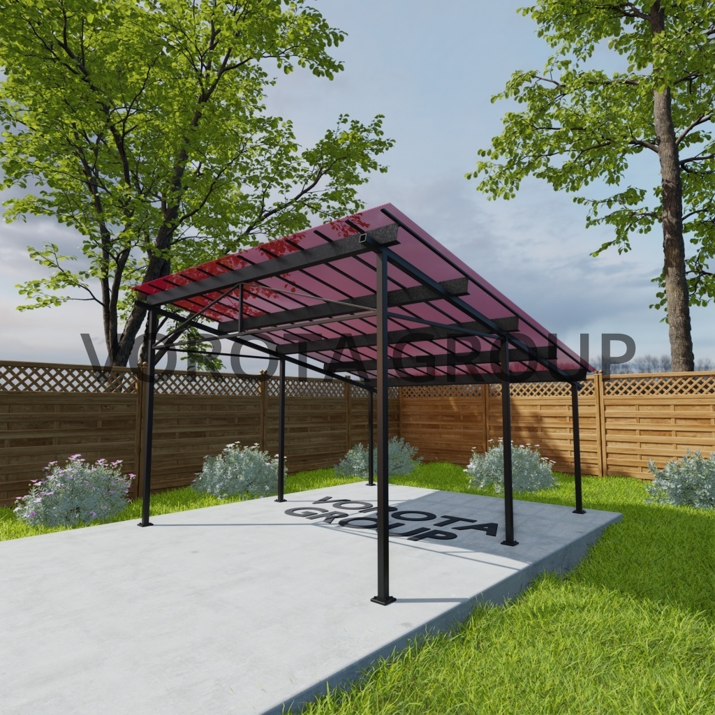 Навес из швелера гранатового цвета, монолитный поликарбонат 6500*6000