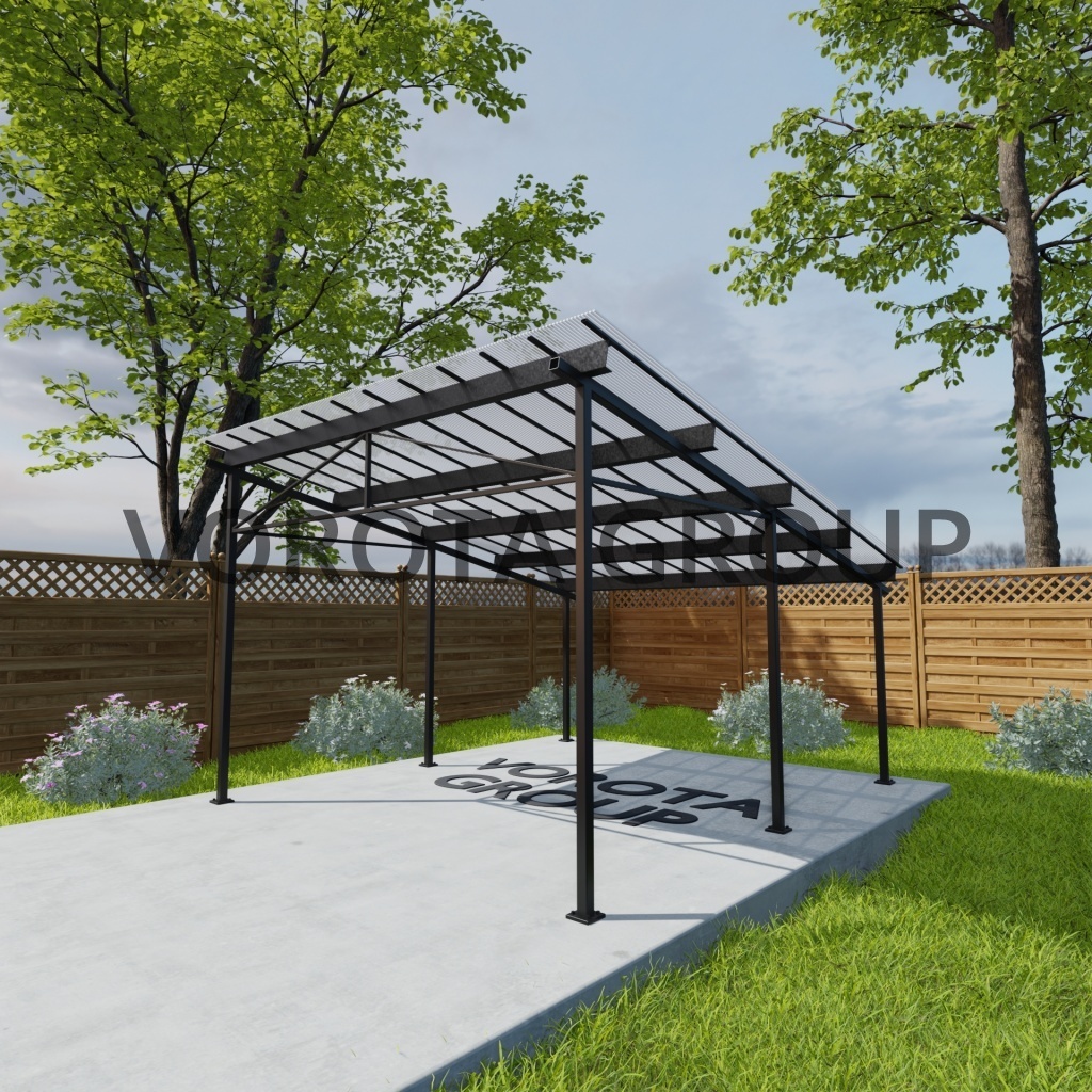 Навес из швелера зеленого цвета, монолитный поликарбонат 6500*6000