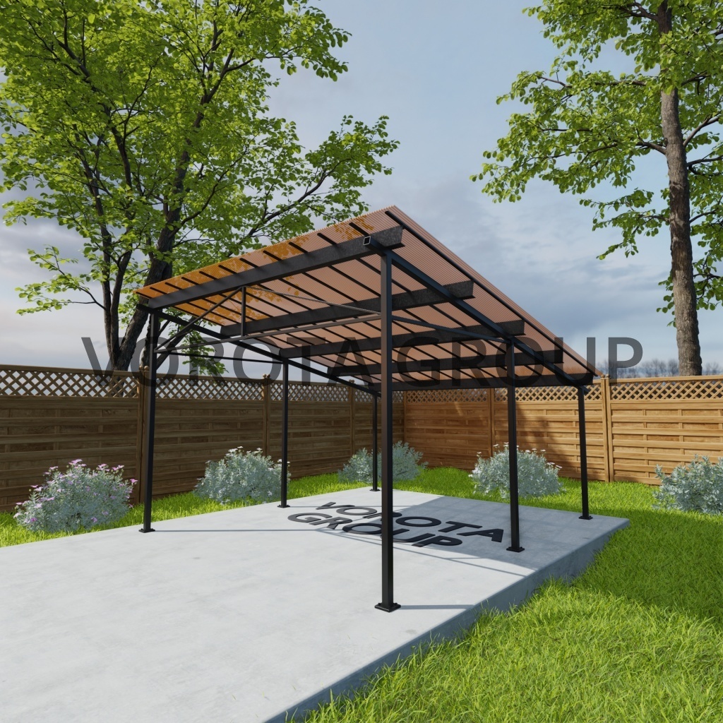 Навес из швелера коричневого цвета, монолитный поликарбонат 6500*12000